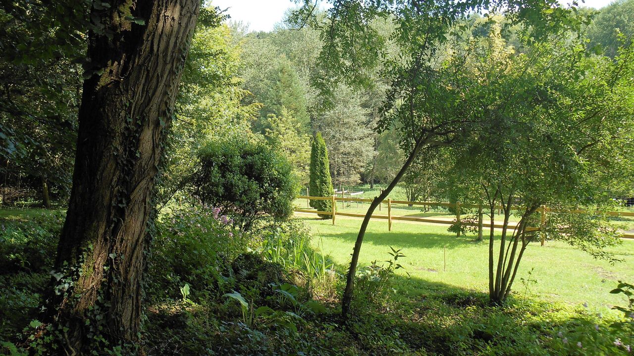 Jardin de type médiéval privatif avec tables pour repas extérieurs, BBQ et salon d'été. Trois places de parking, cinq vélos, table de ping-pong, jeux d'enfants... et deux ânes à câliner. Accès direct à la forêt, arbres magnifiques (hêtres, chênes, peupliers, merisiers etc.) avec chemins. Possibilité de “sylvothérapie”. Village à 400 m, avec boulangerie et pizzeria. Supermarché à 3 km.